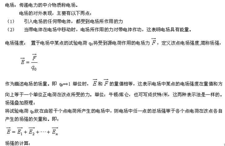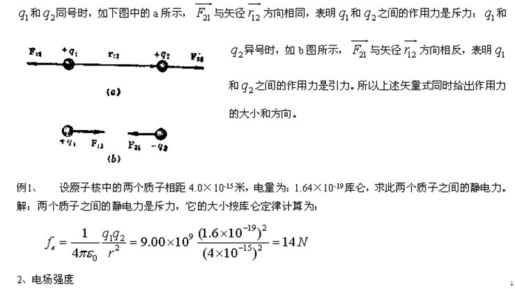 庫(kù)侖定律: 在真空中兩個(gè)靜止點(diǎn)電荷間的相互作用力,方向沿兩個(gè)點(diǎn)電荷的連線(xiàn),同種電荷相斥,異種電荷相吸;大小正比于兩點(diǎn)電荷電量大小的乘積,反比于兩點(diǎn)電荷間距離的平方。