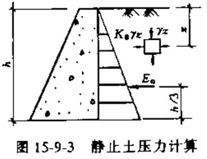 由式(15-9-1)可知,靜止土壓力沿擋土結構豎向為三角形分布,如圖15-9-3所示。