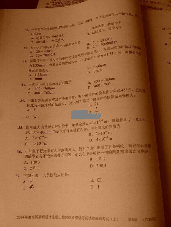 2014年巖土工程師公共基礎考試真題6