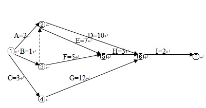 (五)已知某個項目的網絡圖如下,該項目包含九個活動過程即A、B、C、D、E、F、G、H、I,并且該項目的活動關系與資源耗費如圖所示(單位:天)。