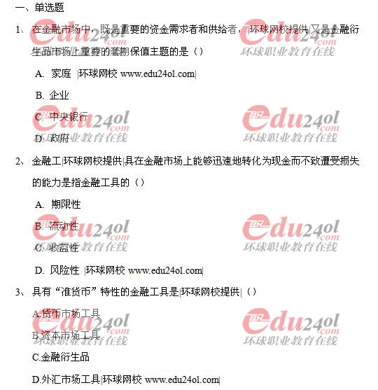 24. 金融工具在金融市場上能夠迅速地轉化為現金而不致受到損失的能力,是指金融工具的():A期限性。B、流動性 C