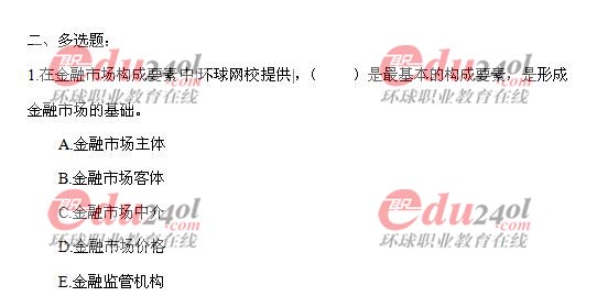 44. 金融市場構成要素中金融市場主體與客體是金融市場形成的基礎。金融中介與金融市場價格是重要組成部分。
