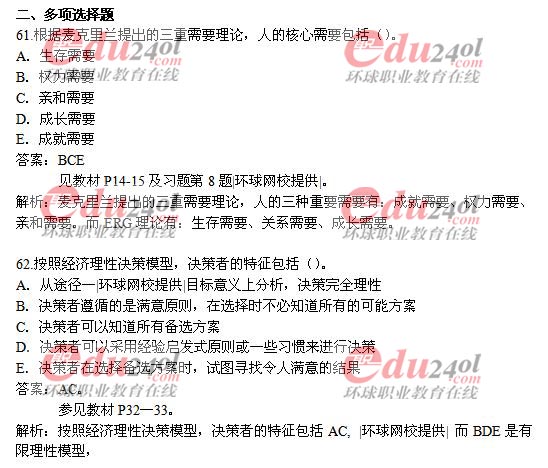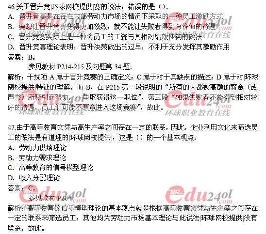 環球網校在經濟師考試結束第一時間整理出來了2009年中級經濟師考試《人力資源專業知識與實務》真題,僅供廣大考生參考,以便更好的了解自己的考試情況,若有不準確地方可以真題討論區提出,以下為2009年中級經濟師考試《人力資源專業知識與實務》真題答案及解析。