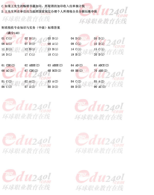 2011年經濟師考試《中級財政稅收》真題及答案(8)