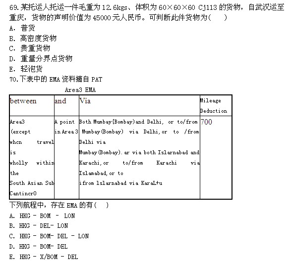 E.作為貨物運輸的行李可以使用普通貨物較高重量點的較低運價