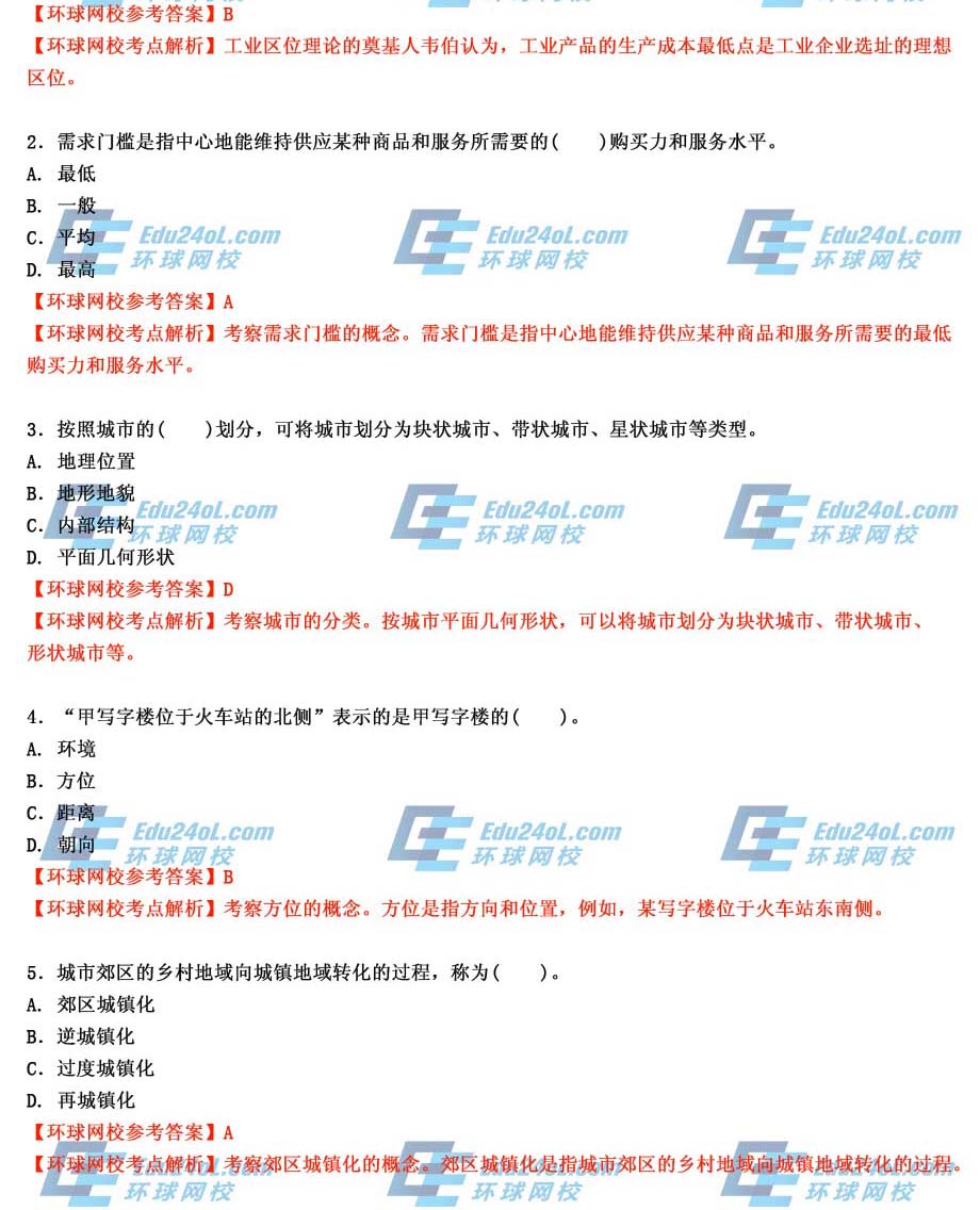 1.工業區位理論的奠基人韋伯認為,工業產品的( )最低點是工業企業選址的理想區位。