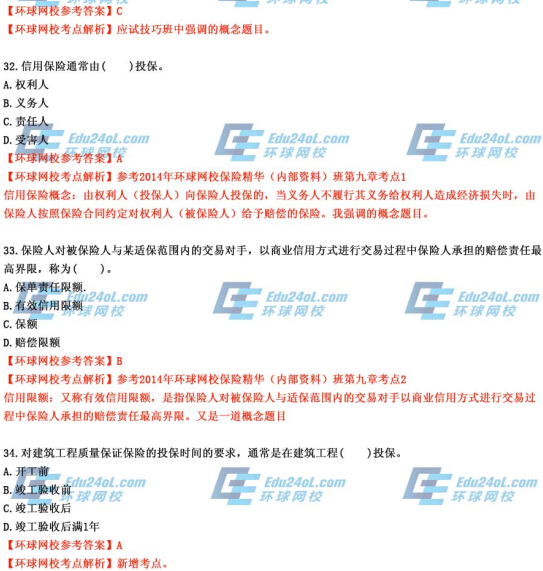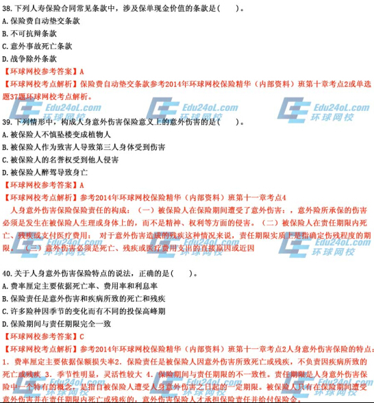 摘要 環球網校2014年中級保險真題答案解析,預祝大家都能順利通過考試