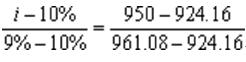 950=80×(P/A,i,5)+1000×(P/F,i,5),采用逐步測試,由于是折價發(fā)行,所以折現(xiàn)率應高于票面利率,用9%測試: