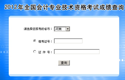 摘要 2012年度全國會計專業技術資格考試成績已公布,即日起河南考生可登陸本網站查詢考試成績