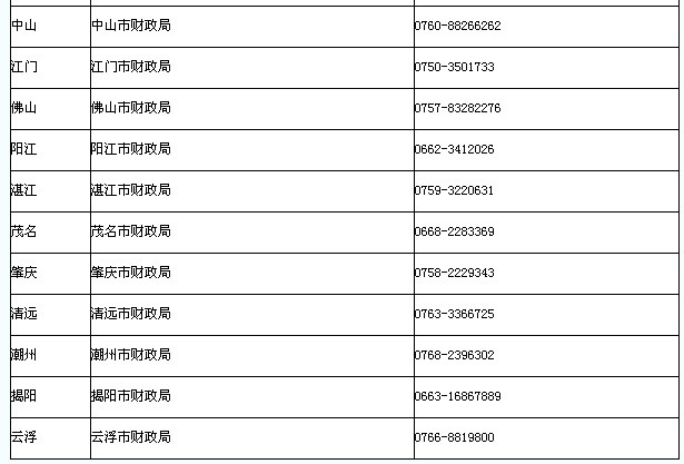 2013年廣東省初級會計職稱考試各考區咨詢電話一覽表