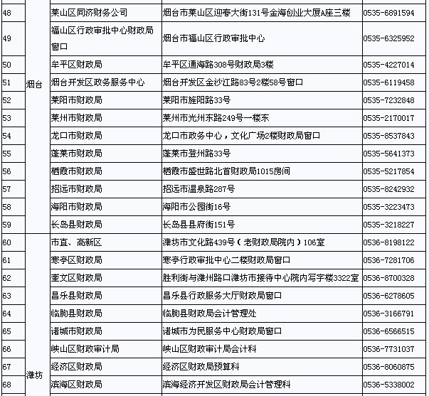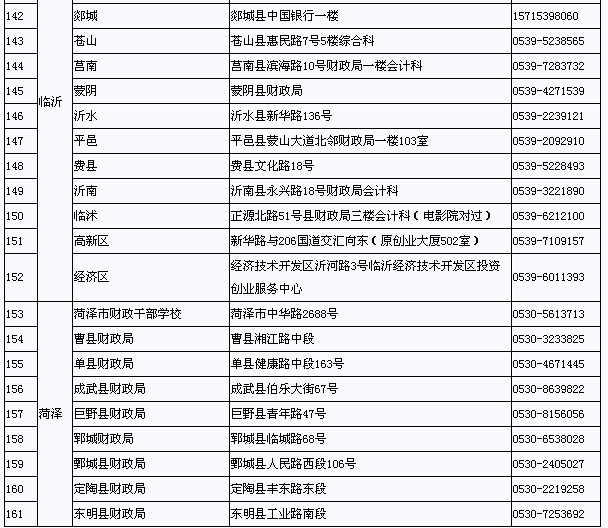 2013年度全國會計專業技術資格考試山東省初級、中級報名點明細表