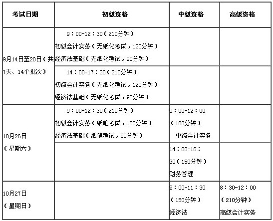 2013年會(huì)計(jì)職稱(chēng)考試時(shí)間表