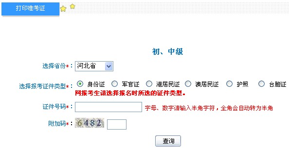 河北省2013年中級會計職稱考試準考證打印入口