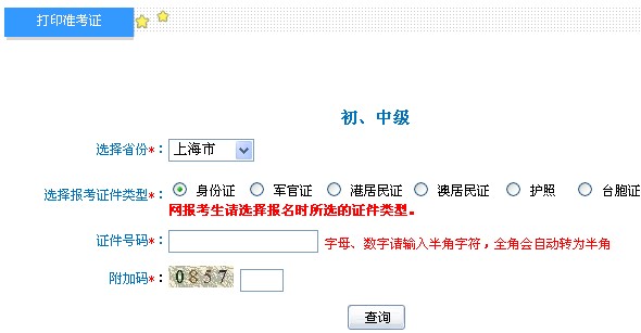 摘要 上海市2013年中級會計職稱考試準考證打印入口