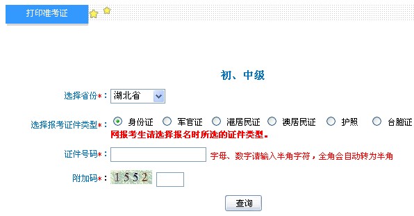 湖北省2013年中級(jí)會(huì)計(jì)職稱(chēng)考試準(zhǔn)考證打印入口