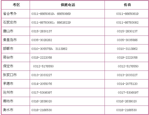 環球網校提示你還有三天,即將面臨考試,小編特此整理了各省市的值班電話,方便使用,希望對考生有所幫助,祝考生順利通過本次考試。