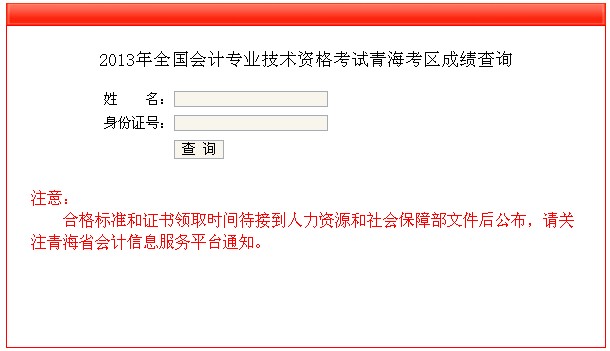 2013年青海省中級會計職稱考試成績查詢入口