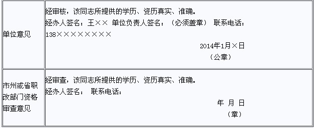 5、單位意見欄蓋章以現在所在單位蓋章為準,不用蓋原來工作單位章。