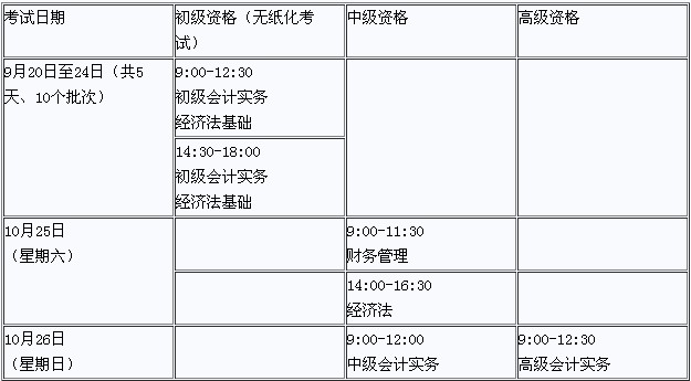 初級資格考試于9月20-24日舉行;中級資格、高級資格考試于10月25-26日舉行。