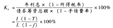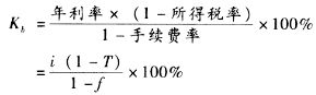 式中:Kb表示銀行借款資本成本率;i表示銀行借款年利率;f表示籌資費用率;T表示所得稅率。