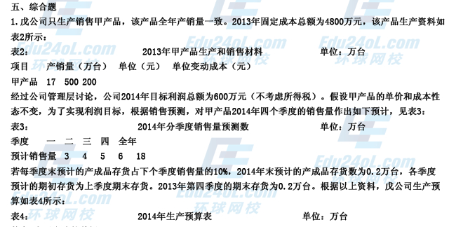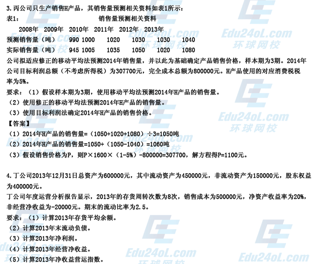 摘要 2014中級會計職稱《中級財務管理》考試真題及參考答案
