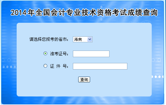 海南2014年中級會計職稱成績查詢入口已開通,查詢時間于12月8日起,請考生及時登錄全國會計資格評價網(http://kzp.mof.gov.cn/)進行查詢