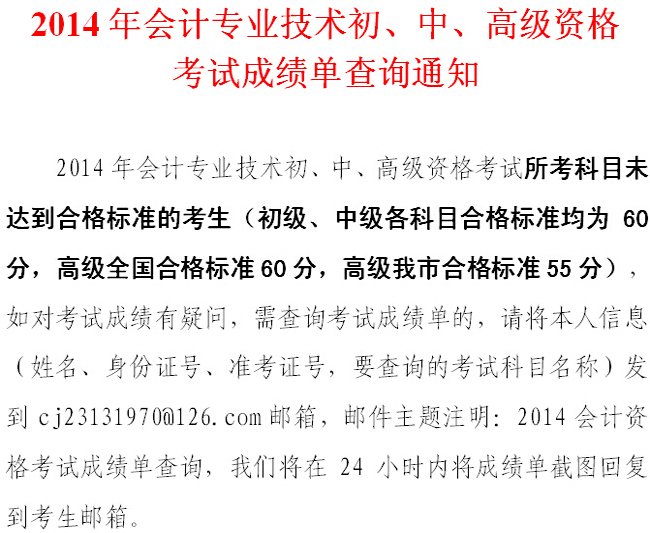 摘要 天津2014年中級會計職稱考試成績單查詢通知