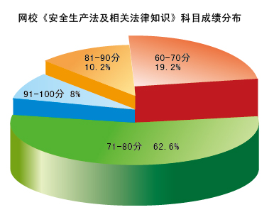 2007年注冊安全工程師各科目合格標(biāo)準(zhǔn)是60分,環(huán)球網(wǎng)校《安全生產(chǎn)法及相關(guān)法律知識》科目學(xué)員考試成績平均分布為:60-70分占19.2%,71-80分占62.6%,81-90占10.2%,91-100分為8%。
