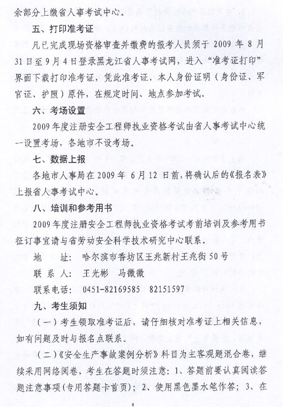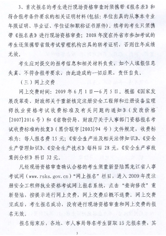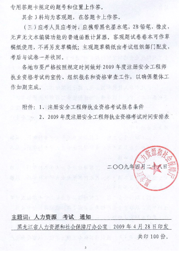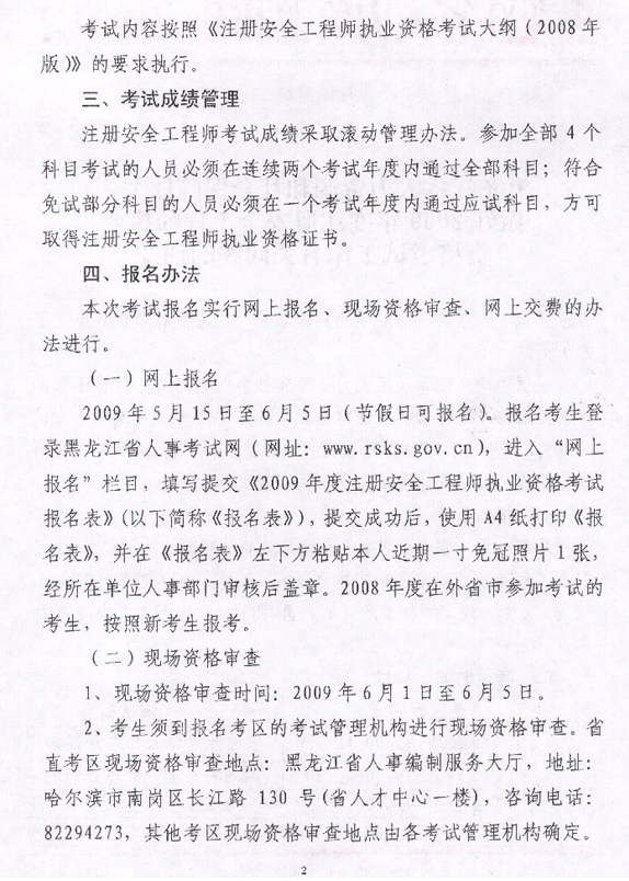 摘要 黑龍江關于做好2009年注冊安全工程師執業資格考試考務工作的通知