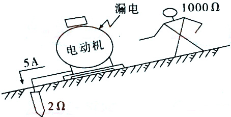 11.對(duì)于T頻電流,人的感知電流約為0.5~1mA、擺脫電流約為5~10mA、室顫電流約為50mA。某事故現(xiàn)場(chǎng)如下圖所示,電動(dòng)機(jī)接地裝置的接地電阻為2Q;該電動(dòng)機(jī)漏電,流過(guò)其接地裝置電流為5A;地面十分潮濕。如果電阻l000Q的人站在地面接觸該電動(dòng)機(jī),可能發(fā)生最嚴(yán)重的情況是( )。 $lesson$