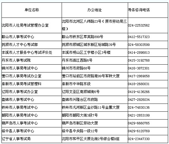 全省人事考試部門(mén)辦公地址和考務(wù)咨詢電話