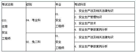 凡符合注冊安全工程師執業資格考試報名條件,且在《暫行規定》下發之日(2002年9月3日)前已評聘高級專業技術職務,并從事安全生產相關業務工作滿 10年的專業人員,可免試《安全生產管理知識》和《安全生產技術》2個科目,只參加《安全生產法及相關法律知識》和《安全生產事故案例分析》2個科目的考試。