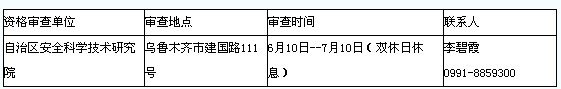 3、初考考生資格審查及繳費(fèi)辦法。初考考生需進(jìn)行資格審查,辦理現(xiàn)場(chǎng)繳費(fèi)手續(xù),考生可登錄中國(guó)安全生產(chǎn)科學(xué)院網(wǎng)站查閱報(bào)考條件:http://www.chinasafety.ac.cn/depnews.aspx?nid=1363。各地州、市初考考生攜帶《考試報(bào)名表》及畢業(yè)證書、學(xué)位證書、從事安全生產(chǎn)工作年限的證明、身份證(免試人員還需提交專業(yè)技術(shù)高級(jí)資格證書和專業(yè)技術(shù)職務(wù)聘任證書)到所在地、州、市安全生產(chǎn)監(jiān)督管理部門進(jìn)行資格審查。烏市的初考考生資格審查時(shí)間地點(diǎn)如下: