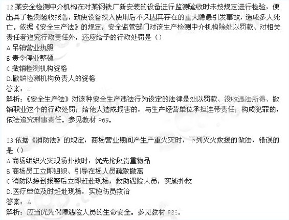 2013年注冊安全工程師法律知識真題及答案(附解析)