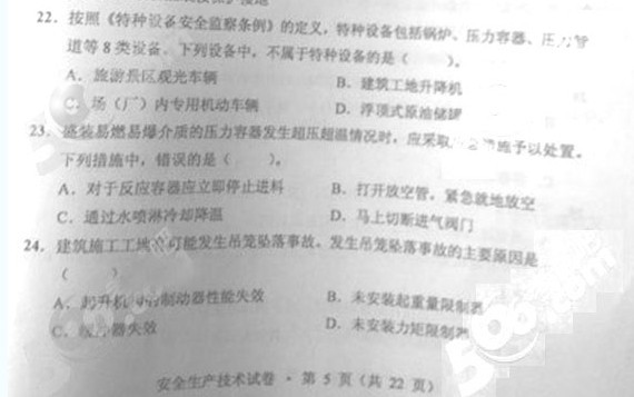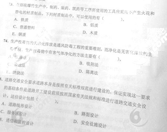 2013年注冊安全工程師生產技術考試試題(圖片版)