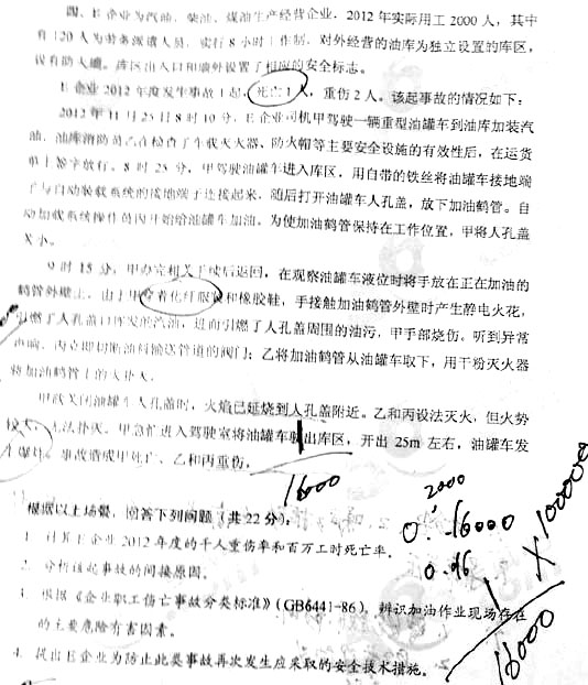 2013年安全工程師考試《案例分析》真題(完整版)