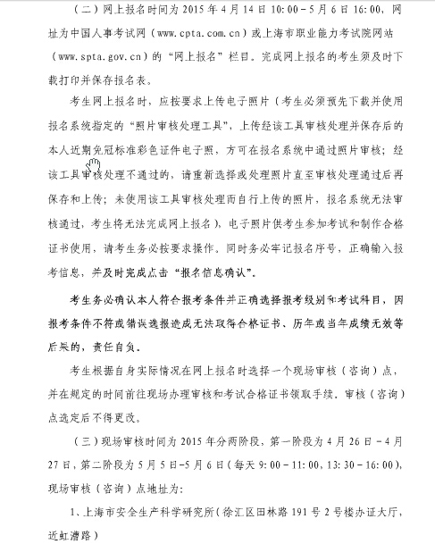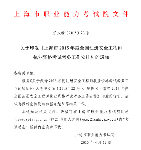 2015年上海安全工程師準考證打印時間:8月28日-9月3日