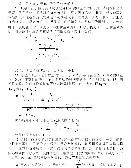 1.影響債券定價(jià)有內(nèi)部因素,也有外部內(nèi)素。內(nèi)部因素主要包括:第一,期限長短。一般期限越長,價(jià)格易變性越大。第二,息票利率。息票利率越低,其價(jià)格易變性一般也越大。第三,提前贖回規(guī)定。提前贖回規(guī)定在財(cái)務(wù)上對(duì)發(fā)行人是有利的,因此具有較高提前贖回可能性的債券應(yīng)具有較高的息票利率,其內(nèi)在價(jià)值就較低。第四,稅收待遇。一般來說,免稅債券的到期收益率比類似的應(yīng)納稅債券的到期收益率低。第五,市場性。市場性好的債券與市場性差的債券相比,一般具有較低的到期收益率和較高的內(nèi)在價(jià)值。
