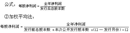 稀釋每股收益=[P+(已確認為費用的稀釋性潛在普通股利息-轉換費用) ×(1-所得稅率)] / (S0+ S1+ Si×Mi÷M0-Sj×Mj÷M0-Sk+認股權證、股份期權、可轉換債券等增加的普通股加權平均數)