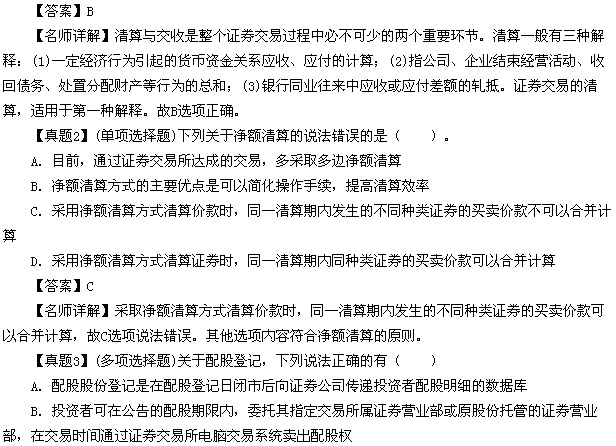 【真題1】(單項選擇題)證券交易的清算適用于下列哪個解釋?( )