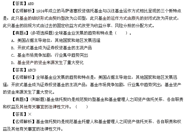 【真題3】(多項選擇題)1924年成立的馬薩諸塞投資信托基金與以往基金運作方式相比呈現的三個新特點是( )。