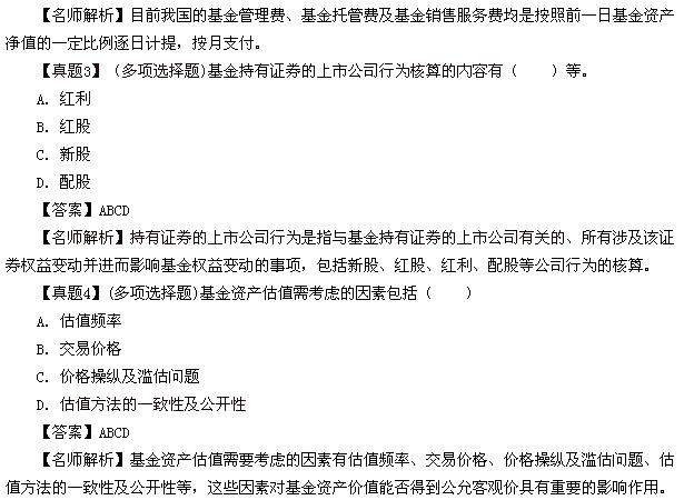 證券從業資格考試《證券投資基金》第七章基金的估值、費用與會計核算經典真題回顧