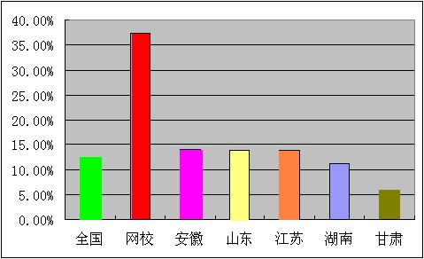 在兩科通過率中,網校的考生通過人數為報名人數的47.50%,比湖南的14.17%、安徽的20.13% 等省市均高于多倍。