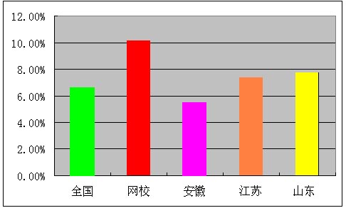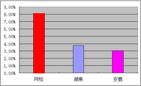 在全科通過率中,網校的考生通過人數為報名人數的8.11%,比湖南的3.74%、安徽的3.04%等省市均高于2倍多。