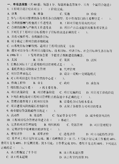 2008年咨詢師《工程項目組織與管理》模擬試