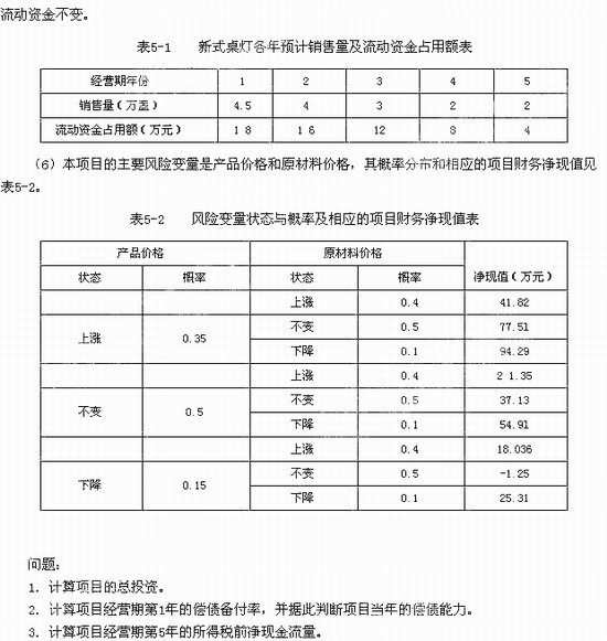 (5)項目經營期各年銷售量及流動資金占用額見表5-1。為計算簡便,假設生產標準桌燈占用的流動資金不變。