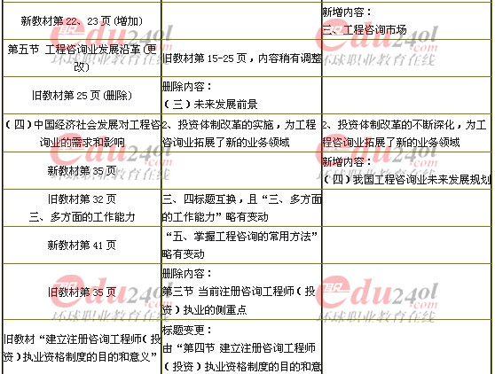 2012年咨詢工程師新舊教材對比《工程咨詢概論》