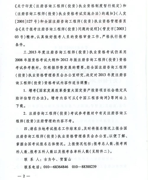 2013年注冊咨詢工程師(投資)考試教材及大綱不變