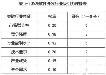 從案例中的行業吸引力評分表可以計算出游戲軟件開發行業的行業吸引力評分為: