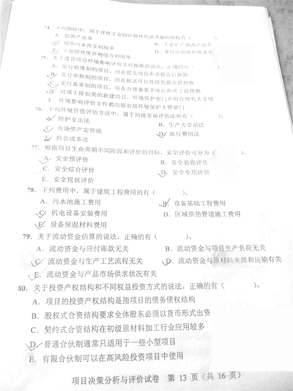 2013咨詢工程師《項目決策分析與評價》真題(完整版)